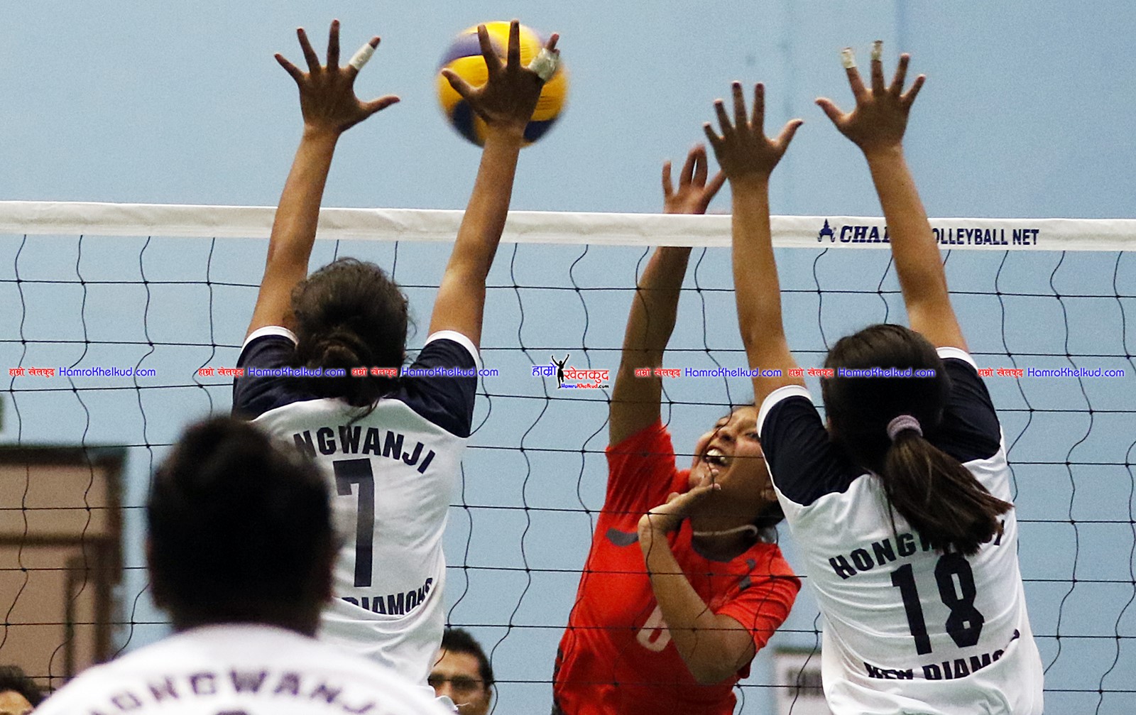 काठमाडौं (हाम्रो खेलकुद) – उपाधिको दावेदार होङग्वान्जी न्यु डायमन्ड एकेडेमीले पाँचौं केएनपी राष्ट्रिय महिला भलिबल प्रतियोगिताको समूह चरणको खेलमा विभागीय नेपाल पुलिस क्लबसँग हार बेहोरेको छ । शनिबार भएको समूह चरणको दोस्रो खेलमा न्यु डायमन्ड पुलिससँग ३–१ को सेटमा पराजित भएको हो । लगनखेलस्थित नेपाली सेनाको कभर्डहलमा शनिबार भएको खेलमा न्यु डायमन्ड सुरुवाती सेटबाट नै […]