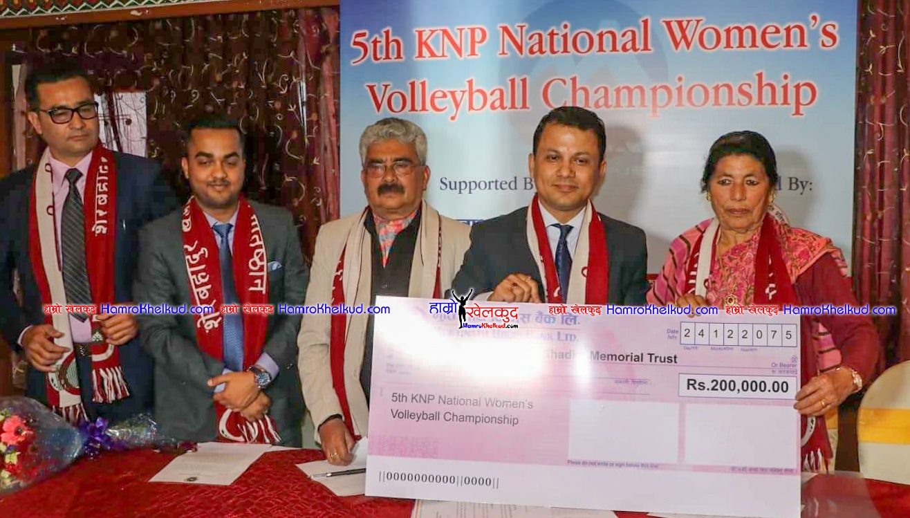 काठमाडौं (हाम्रो खेलकुद) – पाँचौ केएनपी राष्ट्रिय महिला भलिबल प्रतियोगितालाई मुत्तिनाथ बिकास बैंकले प्रायोजन गरेको छ । आयोजक शेर बहादुर खड्का स्मृति प्रतिष्ठानले आज काठमाडौंमा एक पत्रकार सम्मेलन गर्दै प्रतियोगिताको विजेताको लागि मुक्तिनाथ बिकास बैंकसँग प्रायोजन सम्झौता गरेको हो । सम्झौतामा मुक्तनाथ बिकास बैंका सिइओ प्रद्युमान पोखरेल र शेरबाहदुर खड्का स्मृति प्रतिष्ठानकी संरक्षक गमली खड्काले […]
