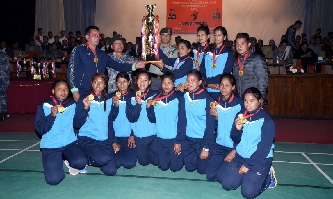 काठमाडौं (हाम्रो खेलकुद) – सशस्त्र प्रहरी महानिरीक्षक छैटौं राष्ट्रिय खुल्ला महिला भलिबल प्रतियोगिताको उपाधि नेपाल एपिएफ क्लबले जितेको छ । शुक्रबार सम्पन्न फाईनल खेलमा होंगवाजी न्यु डायमन्डलाई ३-० को सोझो सेटमा पराजित गर्दै एपीएफलले उपाधि जितेको हो । एपीएफले न्यु डायमन्डलाई २५-१२,२५-११ र २५-११ ले पराजित गरेको हो । विजेता एपिएफले २ लाख ५० हजार […]