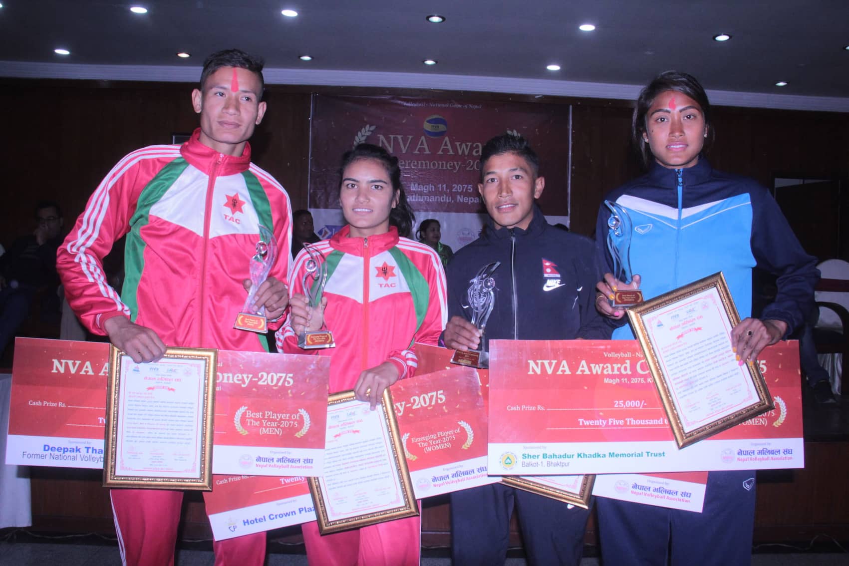 काठमाडौं (हाम्रो खेलकुद) – नेपाल एपीएफ क्लबकी सरस्वती चौधरी र त्रिभुवन आर्मी क्लबका धनबहादुर भट्ट एनभीए अवार्ड वर्ष २०७५ का उत्कृष्ट महिला तथा पुरुष खेलाडी घोषित भएका छन् । नेपाल भलिबल संघ (एनभीए) ले वर्षेनी प्रदान गर्दै आएको अवार्डसँगै दुवै खेलाडीले जनही २५-२५ हजार रुपैया प्राप्त गरे । उदयीमान खेलाडीतर्फ महिलामा आर्मीको निरुता ठगुन्ना र […]