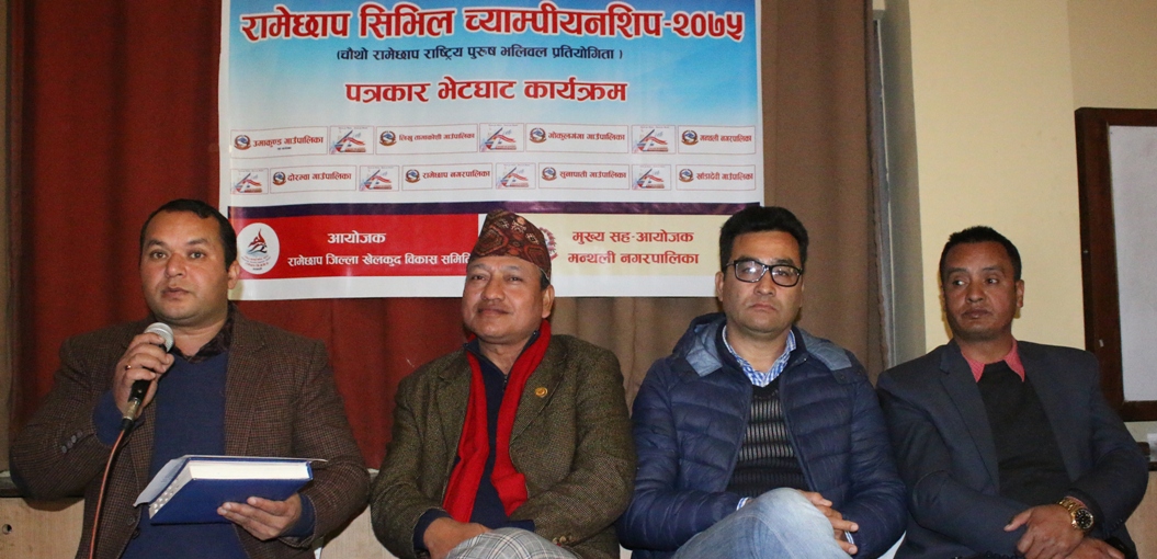 काठमाडौं (हाम्रो खेलकुद) – रामेछाप जिल्ला खेलकुद बिकास समितिको आयोजनामा विगत तीन वर्ष निरन्तर आयोजना हुदै आएको रामेछाप सिभिल राष्ट्रिय पुरूष भलिबल च्याम्पियनसिपको चौथो संस्करण आउदो मंगलबारबाट हुने भएको छ । आयोजकले शुक्रबार राजधानीमा पत्रकार सम्मेलनको आयोजना गर्दै प्रतियोगिता माघ २२ देखि २६ गतेसम्म रामेछाप सदरमुकाम मन्थली हुने जानकारी गराएको हो । प्रतियोगितामा प्रदेशका ७ […]