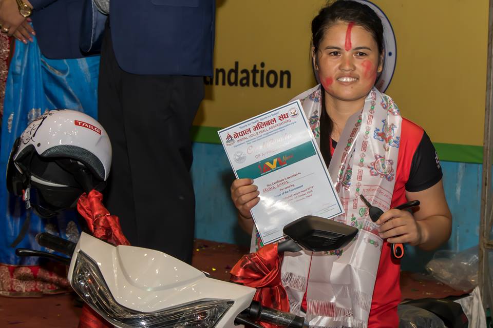 काठमाडौं (हाम्रो खेलकुद)– चितवन टाइग्रेसकी कप्तान मन्जु गुरुङले आदी आबादी महिला भलिबल लिगमा विदेशी खेलाडीबाट प्रशस्त सिक्ने अवसर मिलेको बताएकी छिन् । नेपाल एपिएफ क्लबलाई हराउँदै बुधबार लिग जितेपछि मञ्जुले टोलीमा समावेश गरिएका विदेशी खेलाडीको उच्च प्रदर्शन र प्रेरणबाटै आफ्नो टोली च्याम्पियन बन्न सफल भएको बताइन् । ‘लिग र सेमिफाइनलमा भन्दा फाइनल खेलमा टिमको प्रदर्शन […]