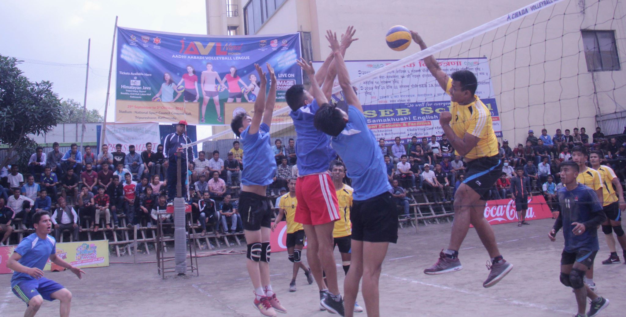 काठमाडौं (हाम्रो खेलकुद)- विभागीय नेपाल एपीएफ क्लब र थ्री स्टार एकेडेमी पाँचौं ढोरपाटन एम १५० खुल्ला पुरुष भलिबल प्रतियोगिताको क्वाटरफाइनलमा प्रवेश गरेका छन् । एपीएफ समूह ‘बी’ बाट तथा थ्री स्टार समूह ‘सी’ बाट लगातार दोस्रो जित निकाल्दै अन्तिम आठमा पुग्न सफल भएका हुन् । दुवै टोलीले समूहमा समान एक खेल खेल्न बाँकी छ । नयाँ […]