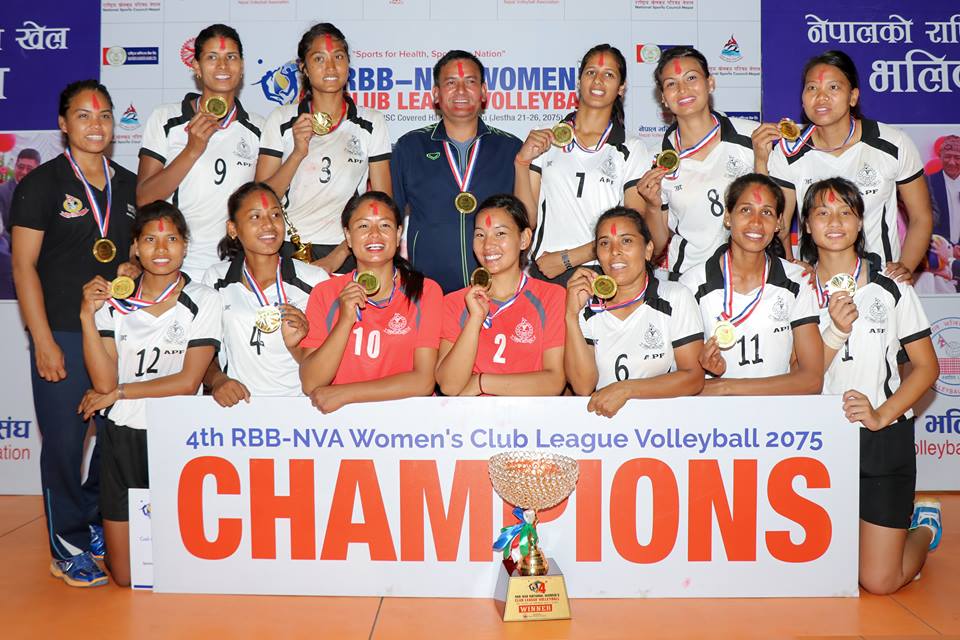 काठमाडौ (हाम्रो खेलकुद) – महिला भलिबलको सशक्त टोली विभगीय नेपाल एपिएफ क्लब चौथो आरबीबी एनभिए राष्ट्रिय महिला क्लब लिग भलिबल च्याम्पियनसिपको च्याम्पियन बनेको छ । प्रतियोगिता अन्तर्गत शनिबार भएको फाइनल खेलमा एपिएफले मुख्य प्रतिस्पर्धी शिवम् न्यु डायमण्ड एकेडेमीलाई ३–० को सोझो सेटमा पराजित गर्दै प्रतियोगिताको च्याम्पियन बन्न सफल भएको हो । एपिएफको यो सिजनको तेस्रो […]