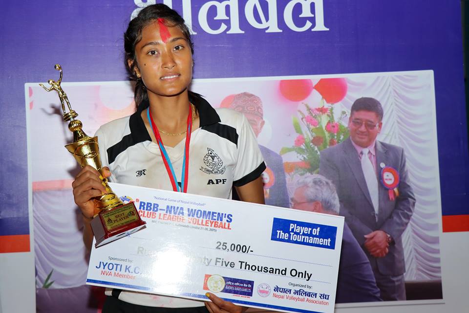 काठमाडौ (हाम्रो खेलकुद) – महिला भलिबलको सशक्त टोली विभगीय नेपाल एपिएफ क्लब चौथो आरबीबी एनभिए राष्ट्रिय महिला क्लब लिग भलिबल च्याम्पियनसिपको च्याम्पियन बनेको छ । प्रतियोगिता अन्तर्गत शनिबार भएको फाइनल खेलमा एपिएफले मुख्य प्रतिस्पर्धी शिवम् न्यु डायमण्ड एकेडेमीलाई ३–० को सोझो सेटमा पराजित गर्दै प्रतियोगिताको च्याम्पियन बन्न सफल भएको हो । एपिएफकी सरस्वती चौधरी प्रतियोगिताको सर्वाेत्कृष्ट […]