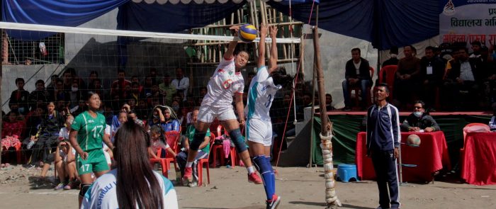 काठमाडौं (हाम्रो खेलकुद) – शिवम् न्यू डायमण्ड एकेडेमी र रुपन्देहीको एभरेष्ट स्कुल प्रथम प्याब्सन यू–१८ राष्ट्रिय महिला तथा पुरुष भलिबल प्रतियोगिताको महिलातर्फको उपाधिका लागि भिड्ने भएका छन् । नयाँ बसपार्कस्थित ढोरपाटन स्पोर्टस् सेन्टरको खेल मैदानमा शनिबार भएको महिलातर्फको पहिलो सेमिफाइनल खेलमा नैकापको शिवम् न्यू डायमण्ड एकेडेमीले काठमाडौंको प्यारामाउण्ट स्कुलमाथि ३–० को सहज जित निकाल्यो । […]