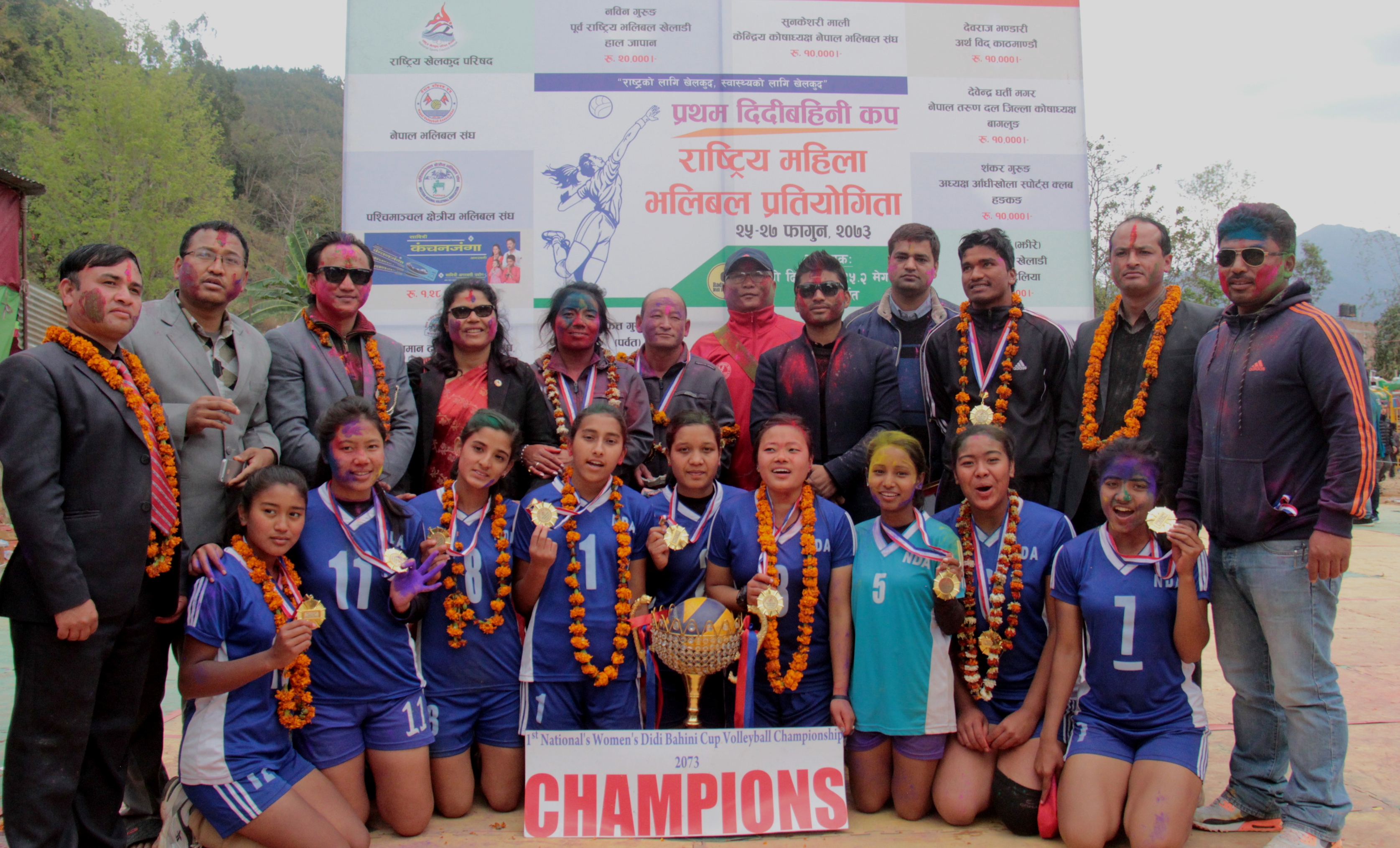 कुश्मा (हाम्रो खेलकुद) – न्यू डाइमन्ड एकेडेमले पर्वतमा प्रथम दिदिबहिनी कप महिला राष्ट्रियस्तर भलिबल प्रतियोगिताको उपाधि जितेको छ । नेपाल एपिएफ क्लबलाई ३–१ सेटले हराउँदै न्यू डाइमन्डले बर्षको चौथो उपाधि जितेको छ । चार उपाधि जित्ने क्रममा न्यू डाइमन्डले तीन पटक एपिएफ र एक पटक अर्को विभागिय टोली नेपाल पुलिस क्लबलाई हराएको थियो । पहिलो […]