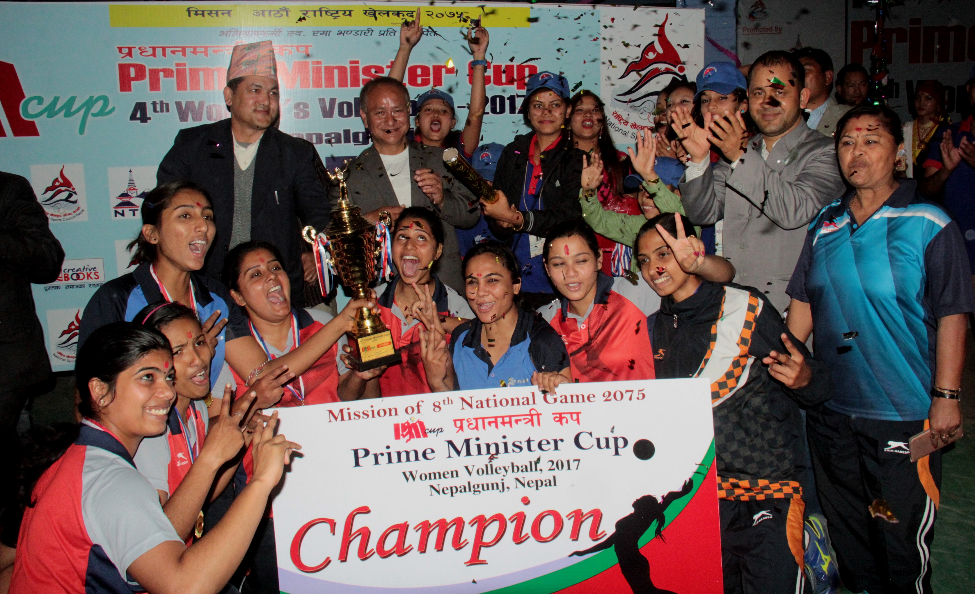 नेपालगन्ज (हाम्रो खेलकुद) – दुई विभागिय टोली नेपाल पुलिस क्लब र नेपाल एपिएफ क्लब प्रधानमन्त्री कप चौथो इन्डो–नेपाल महिला भलिबल प्रतियोगिताको सेमिफाइनल पुगेका छन् । पुलिसले आयोजक मध्य पश्चिमाञ्चललाई र एपिएफले अर्को विभागिय टोली त्रिभुवन आर्मी क्लबलाई समान ३–० ले हराउँदै अन्तिम चारको यात्रा तय गरेको थियो । एपिएफले आर्मीलाई २५–५, २५–८ र २५–९ […]