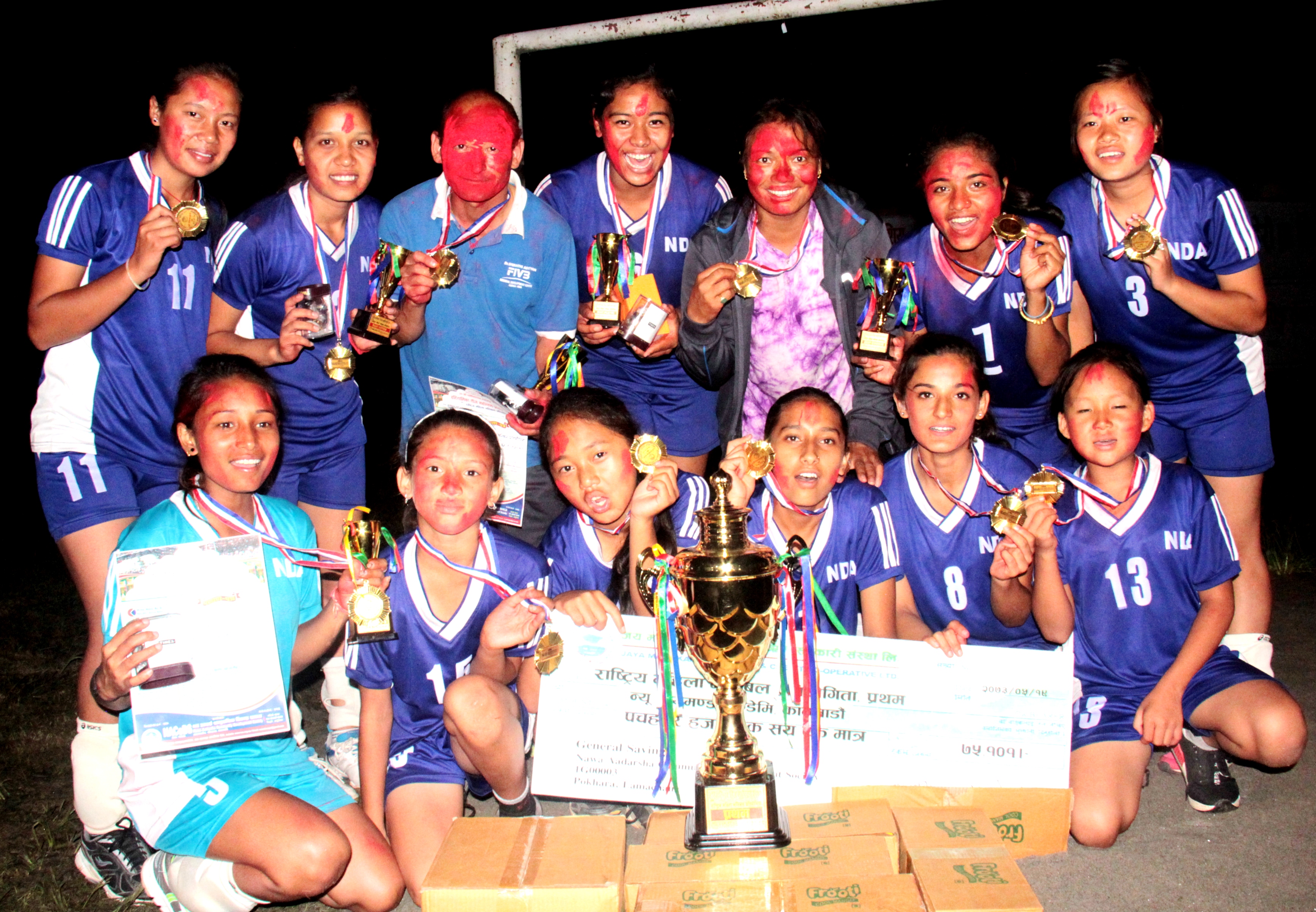 काठमाडौं (हाम्रो खेलकुद )– न्यू डायमन्ड एकेडेमीले राष्ट्रिय महिला भलिबलको उपाधि रक्षा गरेको छ । लगातार चौथो पटक उपाधि जित्ने क्रममा न्यू डायमन्डले आइतबार शसस्त्र प्रहरी बलको एपिएफ क्लबलाई ३०–२८, २५–१५ र २५–२० ले हरायो । डायमन्डको जितमा प्रतिभा मालीले सर्वाधिक २५ स्कोर गरिन् । कप्तान ललिता नाथले ८ र पनमिका राईले ७ स्कोर गरिन […]