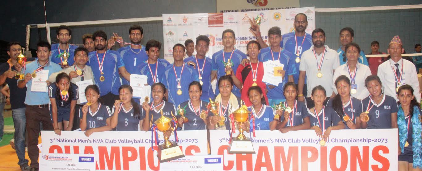 न्यु डायमण्ड स्कुल र सशस्त्र प्रहरीको एपीएफ क्लबले तेस्रो एनभीए राष्ट्रिय महिला तथा पुरुष क्लब भलिबल च्याम्पियनसिपमा विजयी सुरुवात गरेका छन् । महिलातर्फ मंगलबार भएको उद्घाटन खेलमा न्युडायमण्डले विभागीय टोली त्रिभुवन आर्मी क्लब र एपीएफले काभ्रे भलिबल संघलाई पराजित गर्यो । त्रिपुरेश्वरस्थित राष्ट्रिय खेलकुद परिसद् (राखेप) कबर्डहलमा भएको उद्घाटन खेलमा न्युडायमण्डले आर्मीलाई ३–० को सेटमा […]
