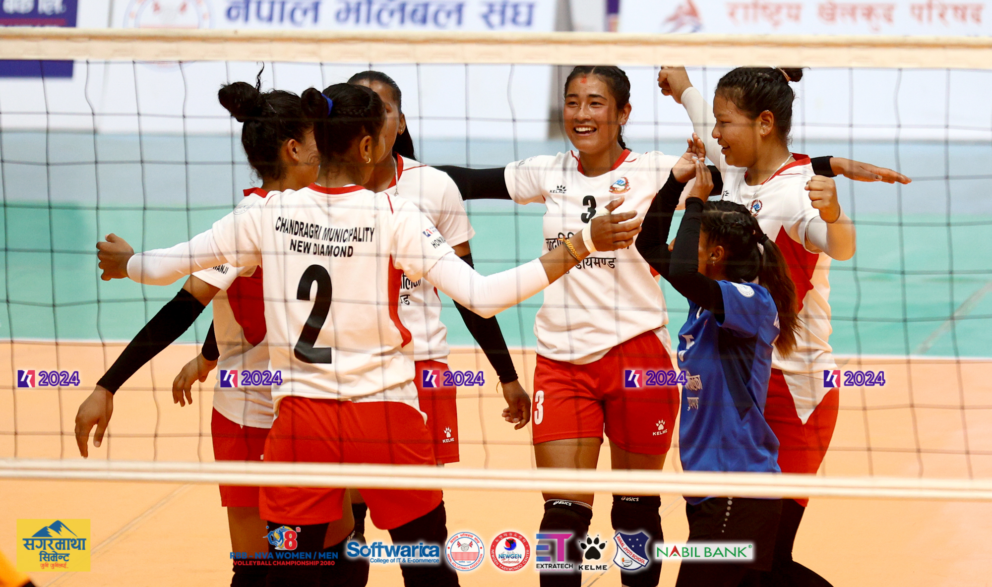 काठमाडौं (हाम्रो खेलकुद) – चन्द्रागिरी नगरपालिका न्यु डायमन्डले आठौं आरबीबी एनभिए महिला तथा पुरुष भलिबल च्याम्पियनसिपको महिलातर्फ विभागीय नेपाल एपिएफ क्लबलाई पराजित गर्दै विजयी सुरुवात गरेको छ । डायमण्डले उपाधि दावेदार एपिएफमाथि ३–१ को सेटमा जित निकालेको हो । खेलको सुरुवातदेखि नै उच्च प्रदर्शन गरेको डायमण्डले त्यही प्रदर्शनलाई निरन्तरता दिदा सफलता हात पारेको हो । […]