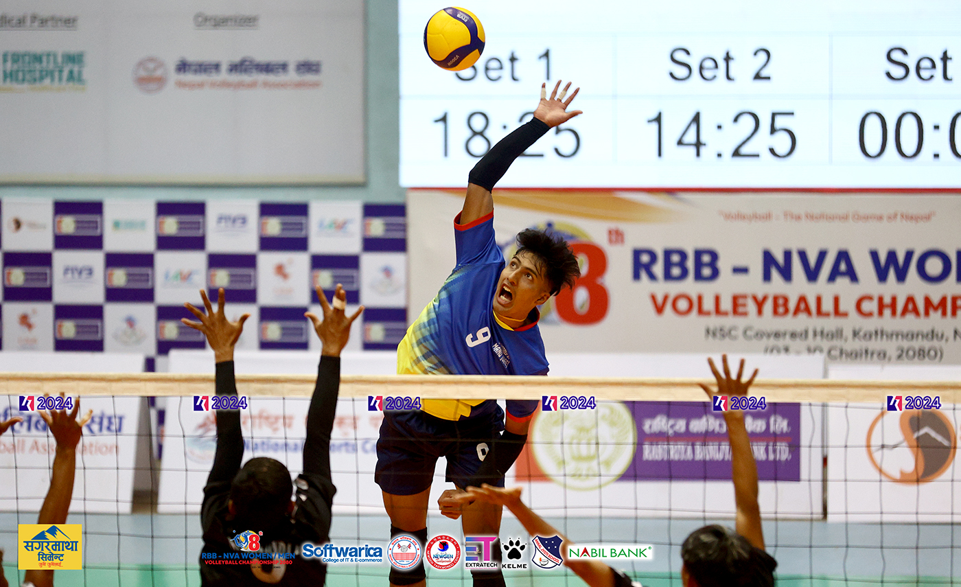काठमाडौं (हाम्रो खेलकुद) – एपिएफ क्लबले जितबाट आठौं आरबीबी एनभिए महिला तथा पुरुष भलिबल च्याम्पियनसिपको पुरुषतर्फको यात्रा सुरु गरेको छ । त्रिपुरेश्वरस्थित राष्ट्रिय खेलकुद परिषद (राखेप) को कभर्डहलमा जारी प्रतियोगिताको सोमबार अन्तिम खेलमा एपिएफले जावलाखेल भलिबल क्लबलाई ३–० को सोझो सेटमा हराएको हो । एपिएफले २५–१८,२५–१७,२५–१४ को सहज जित निकालेको थियो । समूह बीमा एपिएफ […]