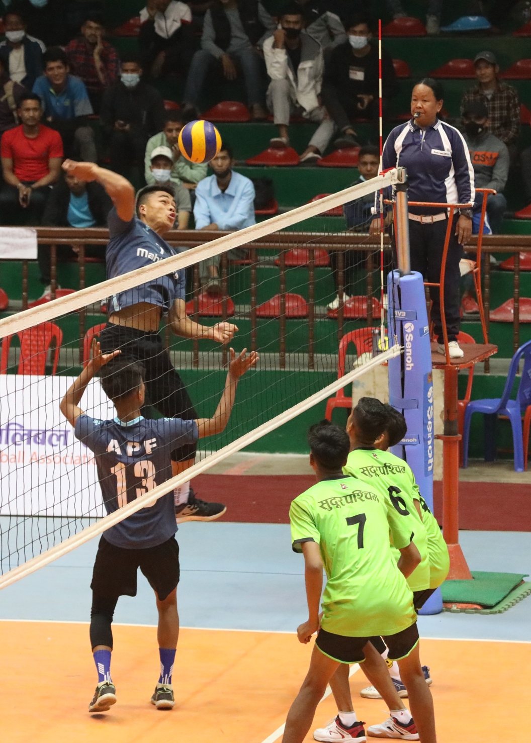 काठमाडौं (हाम्रो खेलकुद) – विभागीय टोली नेपाल एपीएफ क्लब प्रथम पोष्टबहादुर बोगटी स्मृति कप राष्ट्रिय पुरुष भलिबल प्रतियोगिताको सेमिफाइनलमा प्रवेश गरेको छ । त्रिपुरेश्वरस्थित राष्ट्रिय खेलकुद परिषद (राखेप) को कभर्डहलमा बिहीबार भएको समूह चरणको अन्तिम खेलमा एपीएफले सुदूरपश्चिम प्रदेशलाई ३–१ को सेटमा पराजित गर्दै एपिएफ समूह ‘ख’ को उपविजेता बन्दै अन्तिम चारमा पुग्न सफल भएको […]