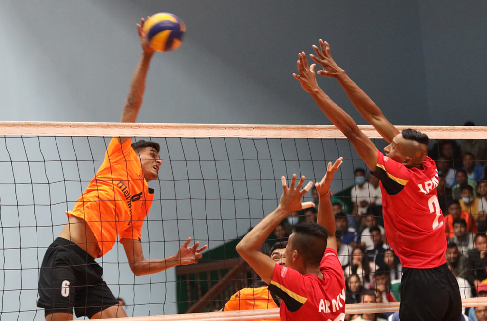 काठमाडौं (हाम्रो खेलकुद) – विभागीय टोली नेपाल एपीएफ क्लब र नेपाल पुलिस क्लब प्रथम पोष्टबहादुर बोगटी स्मृति कप राष्ट्रिय पुरुष भलिबल प्रतियोगिताको फाइनलमा प्रवेश गरेका छन् । त्रिपुरेश्वरस्थित राष्ट्रिय खेलकुद परिषद् (राखेप) को कभर्डहलमा शुक्रबार भएको प्रतिस्पर्धात्मक पहिलो सेमिफाइनलमा दुई सेटले पछि परेको स्थितिलाई उल्ट्याउदै एपीएफले अर्को विभागीय टोली नेपाल आर्मीलाई ३–२ ले पराजित गर्दै […]
