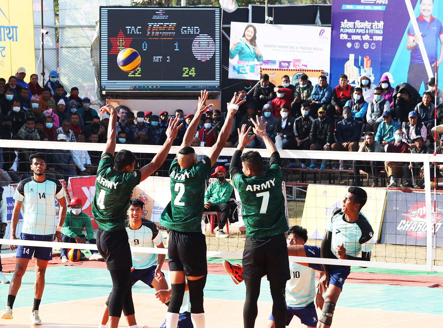 पोखरा (हाम्रो खेलकुद) – साविक विजेता विभागीय त्रिभुवन आर्मी क्लब तेस्रो टाइगर कप राष्ट्रिय तथा अन्तर्राष्ट्रिय आमन्त्रित खुल्ला क्लब च्याम्पियनसिप महिला तथा पुरुष भलिबल प्रतियोगिताको पुरुषतर्फ चौथो भएको छ । यसअघिको दुई संस्करणमा फाइनल खेलेको आर्मी अर्काे विभागीय टोली नेपाल पुलिस क्लबसँग ३–१ को सोझो सेटमा पराजित हुँदै चौथो भएको हो । पोखरा रंगशालास्थित भलिबल […]