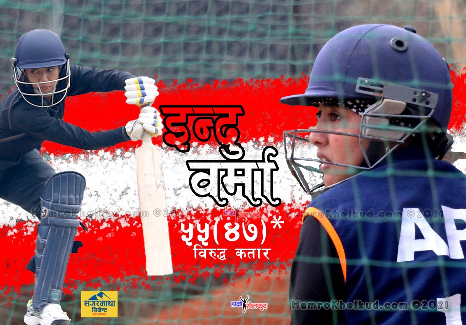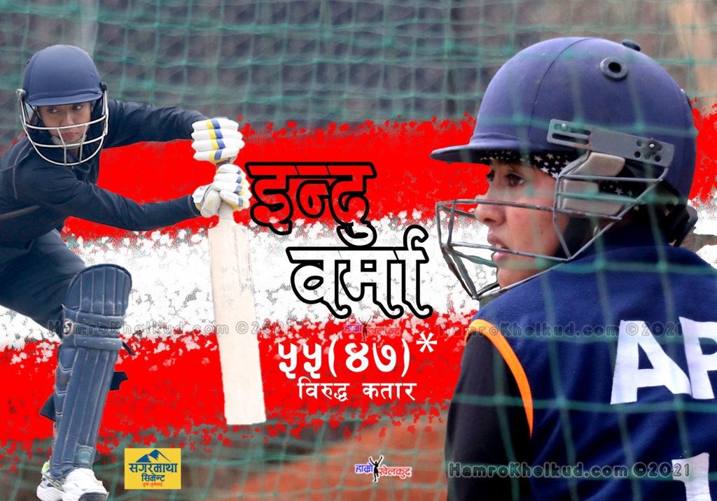 कतारको दोहारमा रहेको वेस्ट इन्ड इन्टरनेशल क्रिकेट स्टेडियममा टस हारेर ब्याटिङको निम्तो पाएको नेपालले निर्धारित २० ओभरमा ४ विकेट गुमाउँदै १ सय ४६ रन बनाएको थियो । नेपालकी इन्दु बर्माले ४७ बलमा ५ चौका सहित सर्वाधिक ५५ रनको योगदान दिइन् । इन्दु रिटायर्ट हर्ट हुँदै अर्को खेलाडीलाई मौका दिएकी थिइन् ।