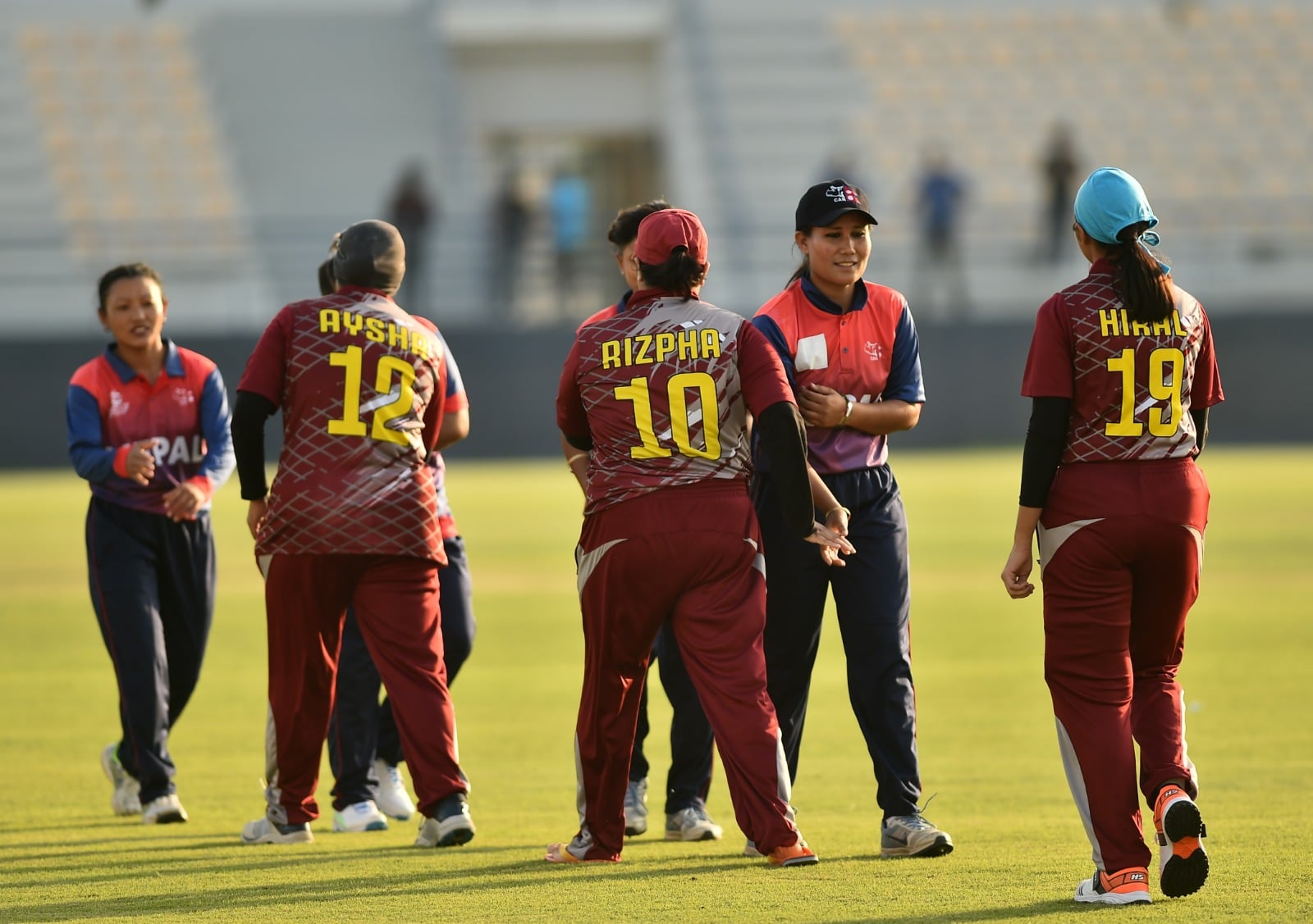 ११ औं ओभरको चौथो बलमा सब्जिना पणायनाले कवितालाई क्याच गराउँदै साझेदारी तोडेकी थिइन् । एलिना खानले सरिता मगरलाई ४ रनमा आउट गरिन् । डली भट्ट शून्यमा रन आउट भएकी थिइन् । अप्सरी बेगम १७ बलमा १ चौका सहित २३ रनमा अविजित रहिन् ।