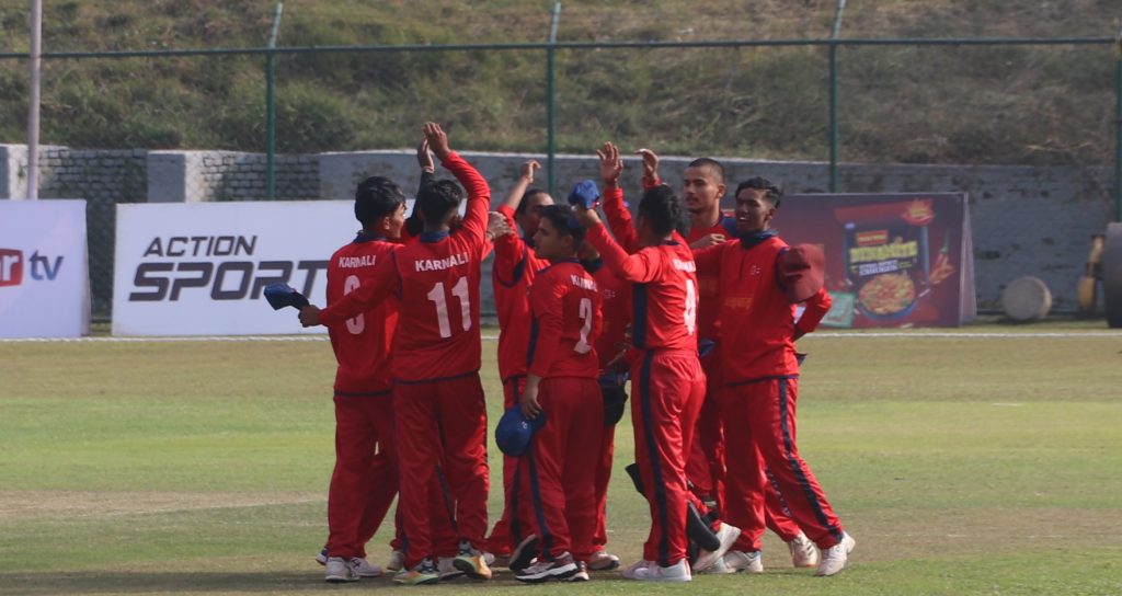 काठमाडौं (हाम्रो खेलकुद) – तीव्र गतिका प्रकाश जैशी र मध्यक्रमका ब्याटर सुवास ऐरको उत्कृष्ट प्रदर्शनमा कर्णाली प्रदेशले यू१९ राष्ट्रिय क्रिकेट प्रतियोगितामा लुम्बिनीमाथि सानदार जित हात पारेको छ । बुधबार कर्णालीले लुम्बिनीलाई १ सय ४० रनको फराकिलो अन्तरले हराउँदै विजयी सुरुवात गरेको हो ।