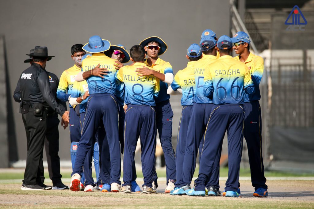 समूह बी को खेलमा श्रीलंकाले शारजाह क्रिकेट स्टेडियममा टस जितेर पहिला ब्याटिङ गर्ने निर्णय लिँदै निर्धारित ५० ओभरमा ५ विकेट गुमाउँदै ३ सय २३ रन बनायो । श्रीलंका मध्यक्रमका ब्याटर पवन पथिराजाले ७२ बलमा ११ चौका सहित सर्वाधिक ८६ रनको योगदान दिए ।