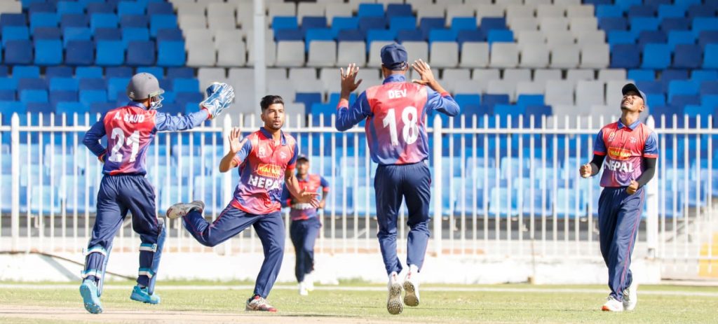 नेपालका तीव्र गतिका बलर गुलशन झाले १० ओभरमा ६० रन खर्चेर १ विकेट लिए । मोहम्मद आदिल अन्सारीले ७ ओभरमा ४३ रन खर्चेर १ विकेट लिए । तिलकराज भण्डारीले ६ ओभरमा ३१ रन खर्चेर १ विकेट लिए । नेपालले दोस्रो खेलमा आइतबार श्रीलंकासँग खेल्नेछ । शीर्ष दुईमा रहेर सेमिफाइनल खेल्न नेपालले श्रीलंकालाई हराउनै पर्ने हुन्छ ।