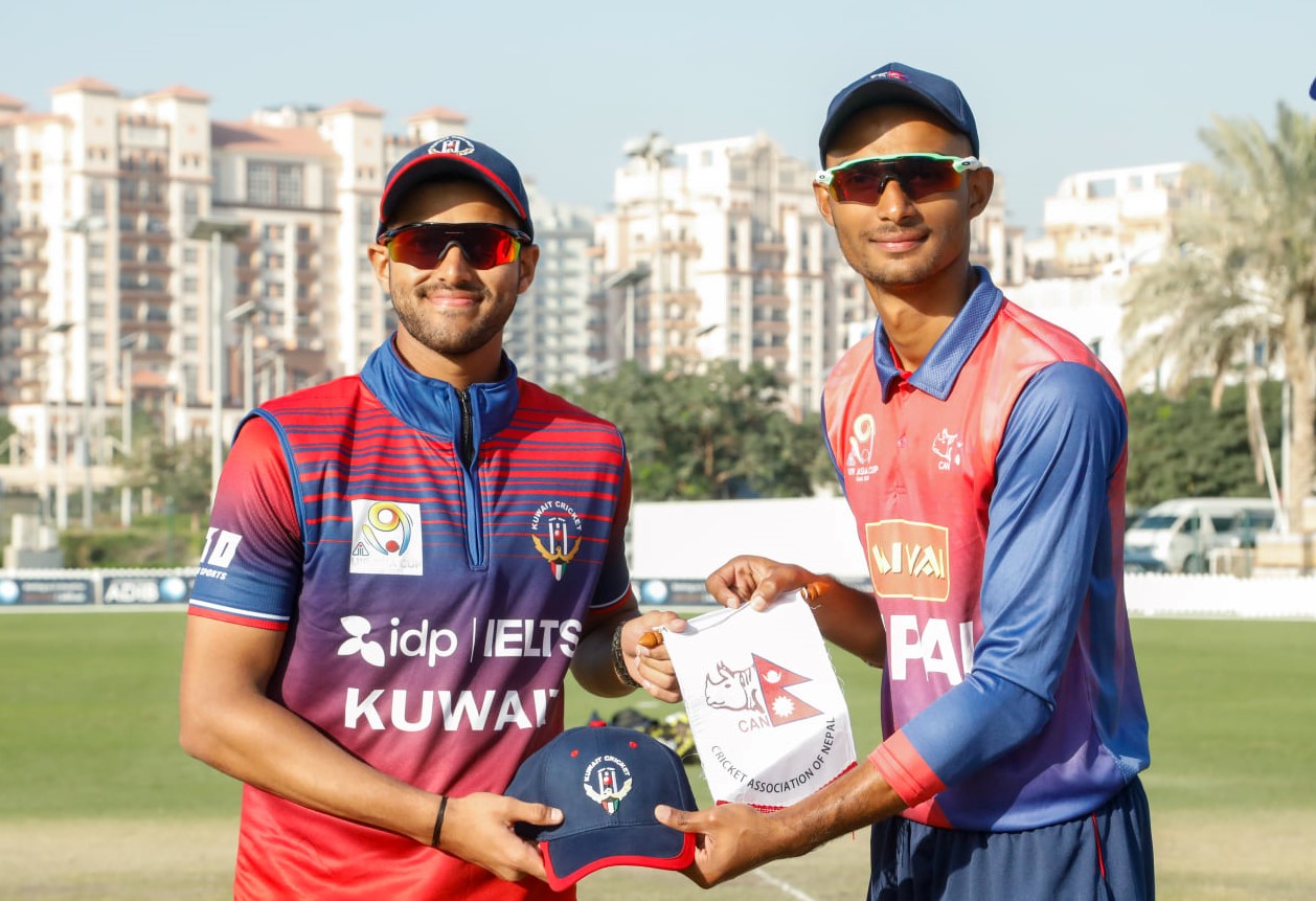 कुवेतका तीव्र गतिका बलर मिर्जा अहमदले शीर्षक्रमका तीन ब्याटरलाई आउट गरेपछि पावर प्लेमै नेपाल धरासय बनेको थियो । पहिलो ओभरको पाँचौं बलमा अहमदले सन्तोष कार्कीलाई मिट भाभ्सरबाट ५ रनमा क्याच गराउँदै पहिलो सफलता दिलाए ।