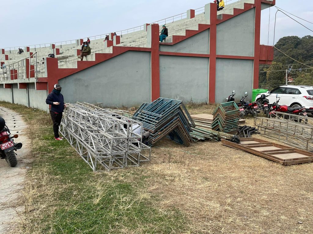 विहीबार खेलको समयमा साउन्ड सिस्टम प्रयोग देखि अन्य कार्यक्रम गर्ने उनले जानकारी दिए । प्याराफिटमा स्टेज बनाउने कार्य भैरहेको छ । पिचको सिधा अगाडी स्टेज बनाउने कार्य हुँदा मानिसहरुको चहलपहल एकदम धेरै हुन्छ । यसैपनि साइट स्क्रिनअघि हलचल नहुनु पर्नेमा मैदानमा कालो कपडा वा बोर्ड लगाएर चलाउँदै आएको छ । तर स्ट्रेट बाउन्ड्रीमै स्टेज बन्दा ब्याटिङमा असर पर्ने देखिन्छ ।