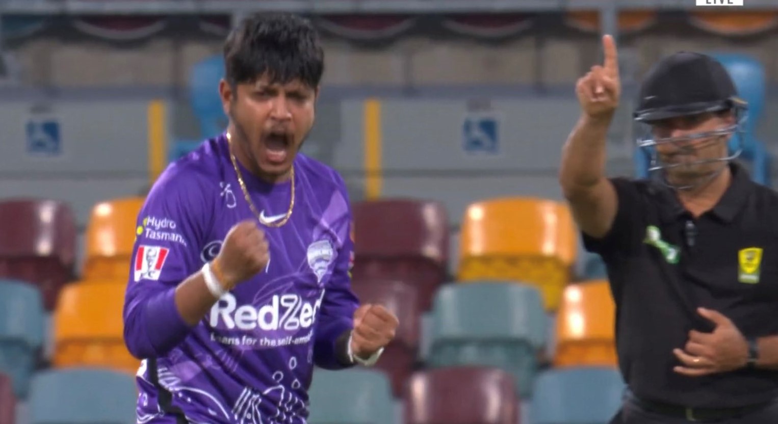 सन्दीपलाई होबार्टले छैटौं ओभरमा बलिङमा ल्याएको थियो । पहिलो बलमा सन्दीपले ड्यानियल साम्सलाई एक रन दिएका थिए । दोस्रो बलमा ज्यासन सांघालाई एक रन दिए । तेस्रो र चौथो बलमा पनि सन्दीपले एक एक रन खर्चिए । पाँचौं बल डट गरेपनि अन्तिम बलमा साम्सले सन्दीपलाई चौका प्रहार गरेका थिए ।