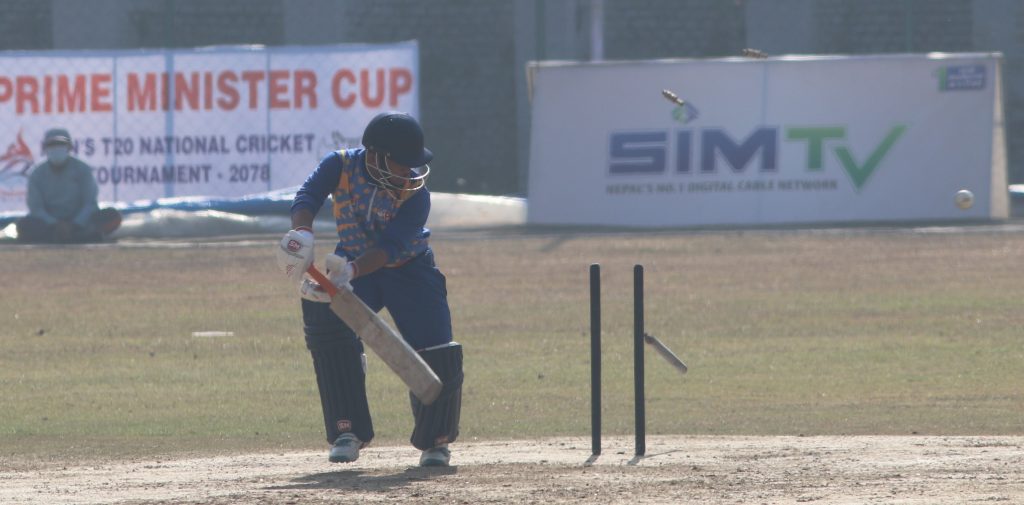काठमाडौं (हाम्रो खेलकुद) – सुदूरपश्चिम प्रदेशले प्रदेश नम्बर १ लाई हराएसँगै त्रिभुवन आर्मी क्लब काठमाडौंमा जारी प्रधानमन्त्री कप टि२० राष्ट्रिय प्रतियोगिता सेमिफाइनलमा पुगेको छ ।