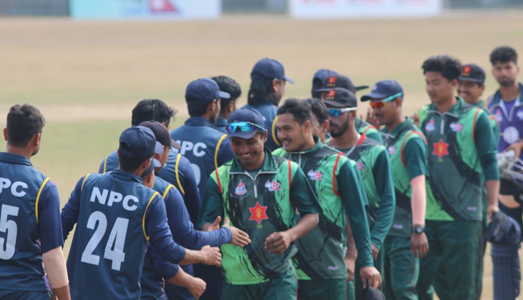 काठमाडौं (हाम्रो खेलकुद) – काठमाडौंमा जारी प्रधानमन्त्री कप टि२० राष्ट्रिय प्रतियोगिता सेमिफाइनल समिकरण पूरा भएको छ । आइतबार सुदूरपश्चिम प्रदेशले प्रदेश नम्बर १ लाई ७ विकेटले हराएसँगै सेमिफाइनल समिकरण पूरा भएको हो ।