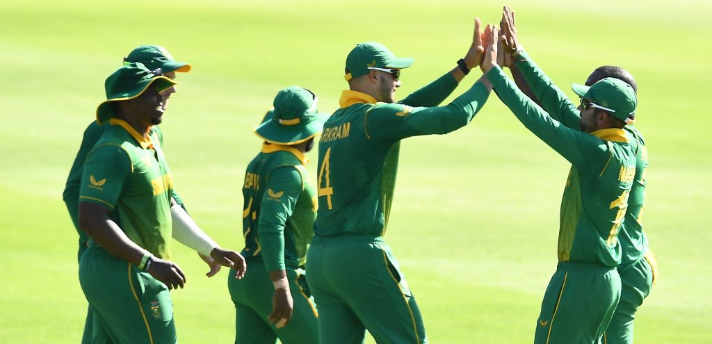 दक्षिण अफ्रिका एन्डिले फेहलुक्वायोले ७ ओभरमा ४० रन खर्चेर ३ विकेट लिए । लुन्गी एनगिडीले १० ओभरमा ५८ रन खर्चेर ३ विकेट लिए । ड्वेन प्रेटिरियसले २, सिसान्डा मगला र केशव महाराजले १–१ विकेट लिए ।