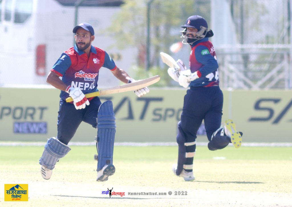 दीपेन्द्रसिंह ऐरी र आरिफ शेख क्रिजमा थिए । यी दुबै ब्याटरले आक्रामक क्रिकेट खेल्न सकेनन् । दीपेन्द्र ३३ बलमा ४१ र आरिफ १२ बलमा ११ रनमा आउट भए । हातमा ८ विकेट हुँदा यी दुई ब्याटरले खुलेर खेल्नुपर्ने थियो । विशेष गरि कमजोर बलमा जोखिम लिनुपर्ने थियो । किनभने युएईपनि १० ओभरमा ८३–१ को अवस्थामा थियो । अन्तिम १० ओभरमा युएईले १ सय ९ रन बटुलेको थियो । टि२० शैलीमा उक्त रन बनाउन कठिन मानिदैन ।