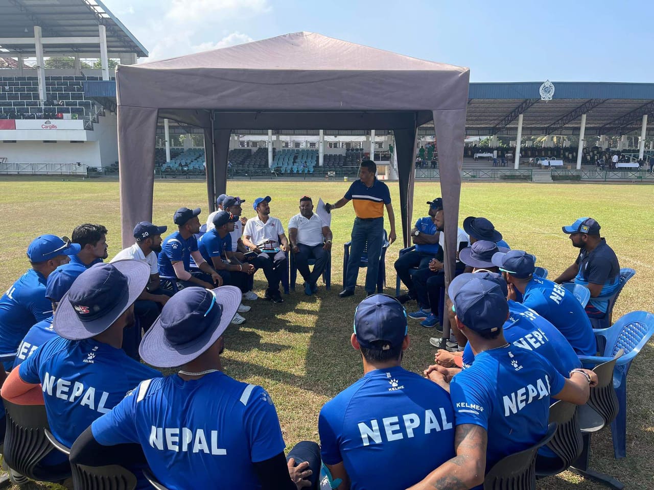 काठमाडौं(हाम्रो खेलकुद) – श्रीलंका पूर्व स्टार ब्याटर तथा विश्वकप च्याम्पियन रोशन महानमाले नेपाली क्रिकेट टोलीसँग अन्तरक्रिया गरेका छन् । आइसिसी विश्वकप लिग–२ को तयारीको लागि श्रीलंका भ्रमणमा रहेको नेपालले विहीबार श्रीलंका पुलिससँग अभ्यास खेल खेलेको थियो । नेपाली टोलीको खेलपछि रोशनले टोलीसँग अन्तरक्रिया गरेका थिए ।