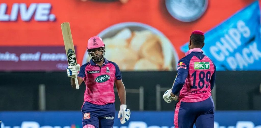 ओपनर यशस्वी जैसवाल र जस बटलरले पहिलो विकेटका लागि ६.१ ओभरमा ५८ रनको साझेदारी गर्दै राम्रो सुरुवात दिलाए । जैशवाल रोमारियो शेफर्डको बलमा एडेन माक्ररमबाट २० रनमा क्याच आउट भए । जैसवालले १६ बलमा २ चौका र १ छक्का प्रहार गरे । उमरन मलिकको बलमा बटलर कट बिहाइन्ड ३५ रनमा विकेटकिपर निकोलस पुरनबाट समातिए ।