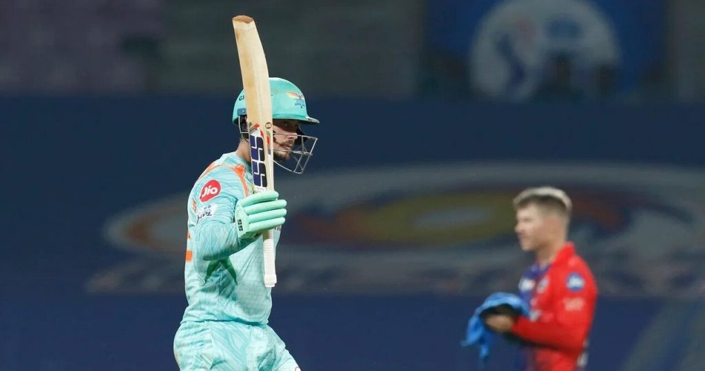 अन्तिम ६ बलमा जितको लागि लखनऊलाई ५ रन चाहिँएको थियो । दीपक हुडा शार्दुल ठाकुरको पहिलो बलमा अक्षर पटेलबाट ११ रनमा क्याच आउट भए । दोस्रो बल आयुष बदोनीलाई डट राखे । तेस्रो बलमा बदोनीले चौका र चौथो बलमा एक्स्ट्रा कभरमा छक्का प्रहार गर्दै खेल सकाए ।