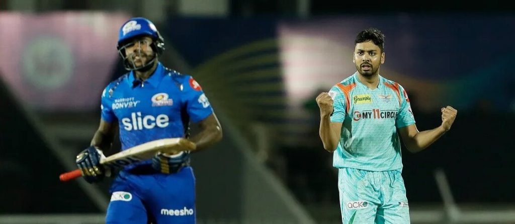 मुम्बई सुरुवाती ६ खेलमा हारका साथ पुछारमा छ । मुम्बईले आइपिएल इतिहासमा पहिलो पटक ६ सुरुवाती खेल गुमाएको हो । यसअघि मुम्बईले २०१४ मा सुरुवाती पाँच खेल लगातार गुमाएको थियो । मुम्बईले बिहीबार चेन्नई सुपरकिंग्ससँग खेल्नेछ । लखनऊको यो चौथो जित हो । लखनऊले मंगलबार रोयल च्यालेन्जर्स बेंगलोरसँग खेल्नेछ ।