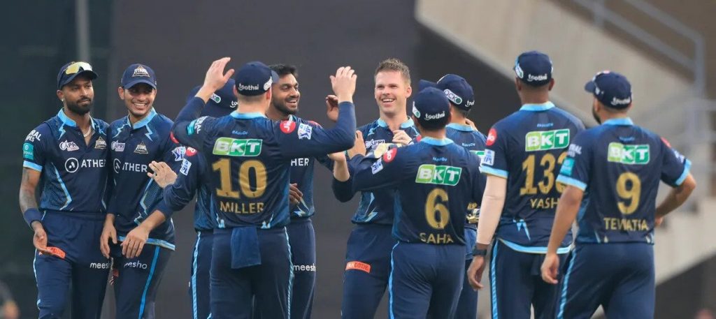 त्यसअघि डिवाई पाटिल स्पोर्ट्स एकेडेमी मुम्बईमा टस जितेर ब्याटिङ थालेको गुजरातले निर्धारित २० ओभरमा ९ विकेट गुमाउँदै १ सय ५६ रन बनाएको थियो । गुजरातका हार्दिक पान्ड्याले ४९ बलमा ४ चौका र २ छक्कासहित सर्वाधिक ६७ रन बनाए । हार्दिकले चोटका कारण पछिल्लो चेन्नई सुपर किंग्ससँगको खेल गुमाएका थिए ।