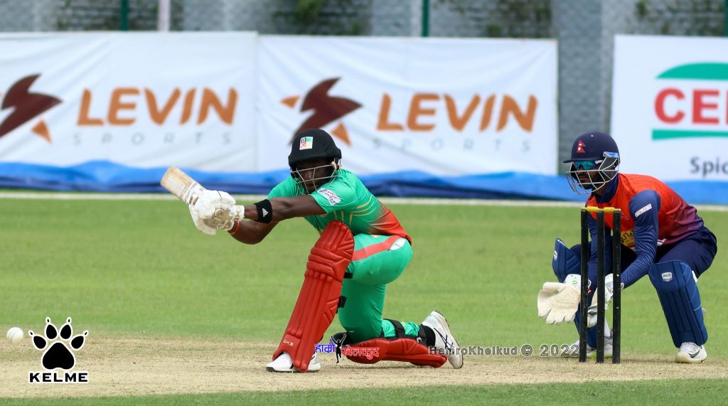 त्यसअघि टियु क्रिकेट मैदानमा टस हारेर ब्याटिङको निम्तो पाएको नेपाल ३१.३ ओभरमा १ सय ३६ रनमा अल आउट भएको थियो । नेपालका अलराउन्डर सोमपाल कामीले ७० बलमा २ चौका र १ छक्कासहित सर्वाधिक ३० रन जोडेका थिए । तीव्र गतिका बलर करण केसीले ३६ बलमा ३ चौकासहित २५ रन बनाए ।