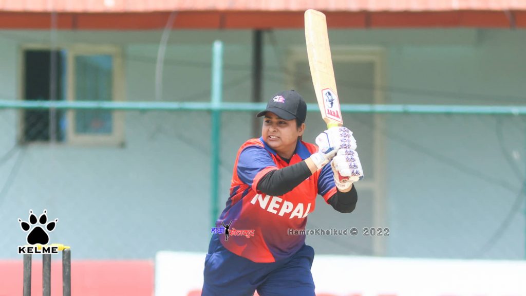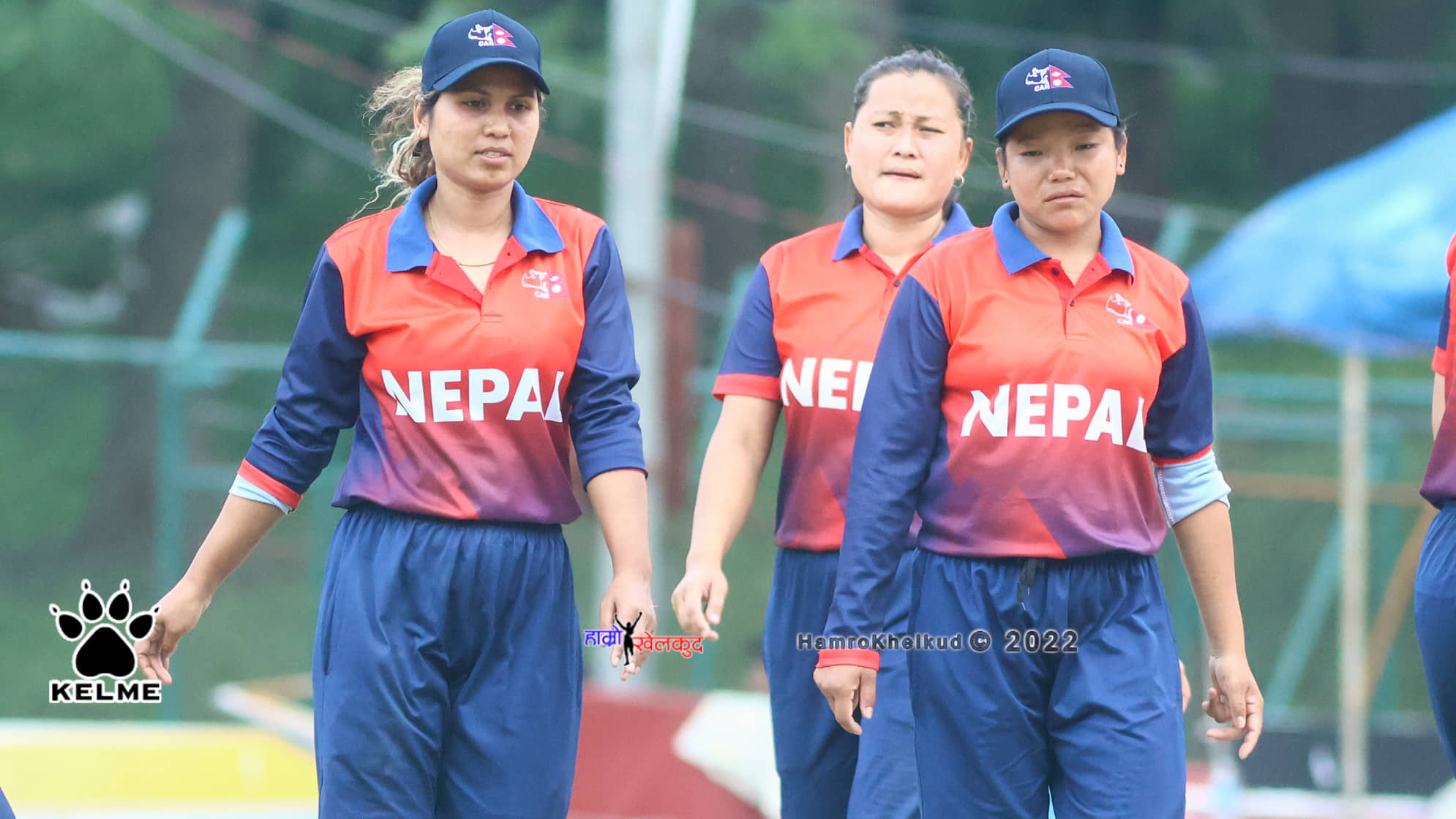 इन्दु बर्मालाई सारा अकिटेंगले १ रनमा एलबीडब्लू आउट गरिन् । रिता मुसामालीको बलमा सरिता मगर शून्यमा क्याच भइन् । रोमा थापा र डली भट्ट ३–३ रनमा आउट भए । कप्तान रुविना क्षेत्री बेलबासे १५ बलमा २ चौकासहित १८ रनमा अविजित रहिन् ।