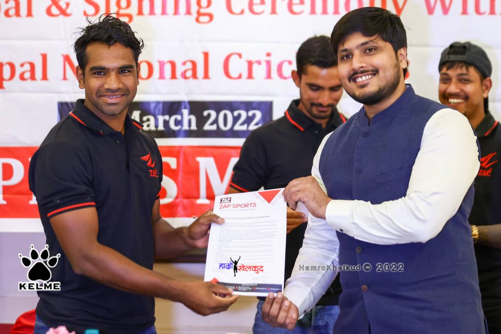 ज्याप नेपालले बुधबार एक पत्रकार सम्मेलन गर्दै क्रिकेट ब्याटसहित सामग्री एक वर्षको लागि सम्झौता गरेको छ । ज्यापले सन्दीपसहित युवा ओपनर सुनिल धमला, देव खनाल, आक्रामक ब्याटर आदिल अन्सारी, अलराउन्डर भीम सार्की र विकेटकिपर विनोद भण्डारीलाई प्रायोजन गरेको हो ।