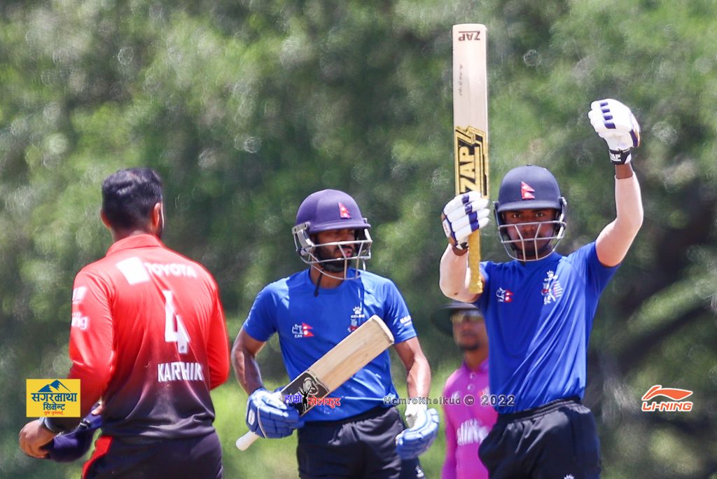 नेपालका कप्तान रोहित पौडेलले ९० बलमा ५ चौका र ४ छक्कासहित १ सय १ रनमा रन आउट भए । कमजोर सुरुवात गरेको नेपाललाई रोहितले सानदार शतकका साथ विशाल योगफलको आधार तय गरेका छन् । रोहितले ८९ बलमा शतक प्रहार गरेका थिए ।