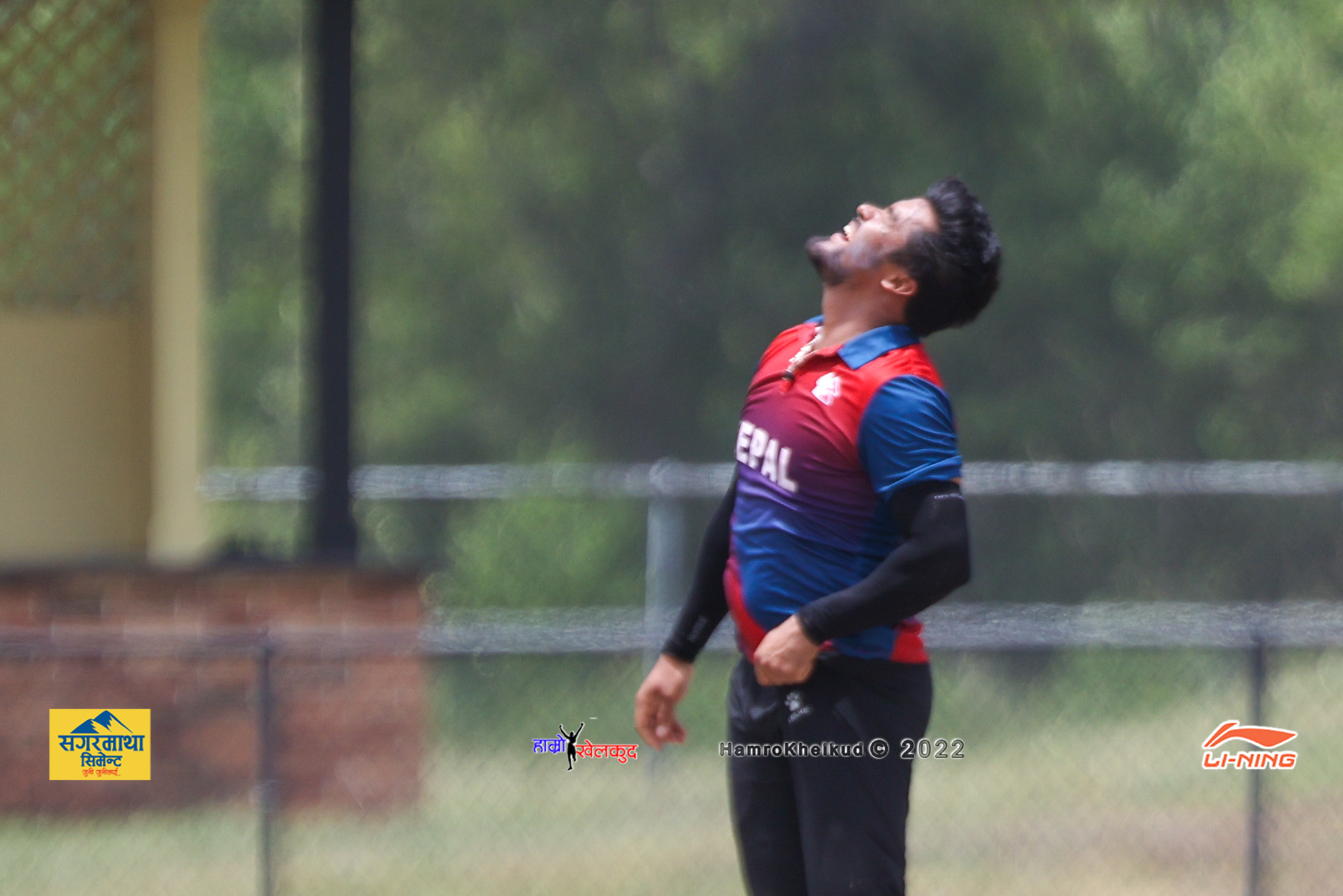 जितको लागि १ सय ६४ रनको मध्यम विजयी लक्ष्य पछ्याएको नेपालले ३३.१ ओभरमा ३ विकेट गुमाउँदै पूरा गर्यो । नेपालको जितमा आसिफ शेखले ८६ बलमा ७ चौका र १ छक्कासहित सर्वाधिक ६२ रनको योगदान दिए । कुशल भुर्तेल ७५ बलमा ५ चौकासहित ५६ रनमा क्याच आउट भए । रोहित पौडेल २१ र दीपेन्द्रसिंह ऐरी ६ रनमा अविजित रहे ।