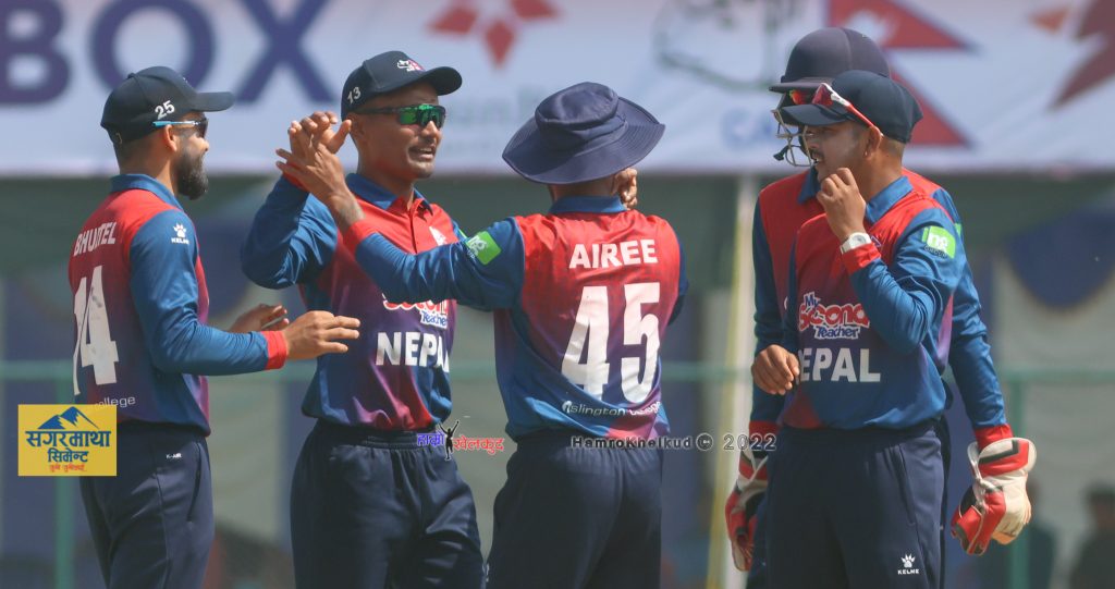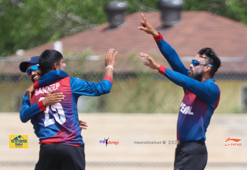 सन्दीप लामिछाने (कप्तान), रोहित पौडेल (उपकप्तान), आसिफ शेख (विकेटकिपर), कुशल भुर्तेल, देव खनाल, दीपेन्द्रसिंह ऐरी, आरिफ शेख, करण केसी, सोमपाल कामी, आदिल अन्सारी, बसिर अहमद, किशोर महतो, पवन सरार्फ र विनोद भण्डारी (विकेटकिपर) ।