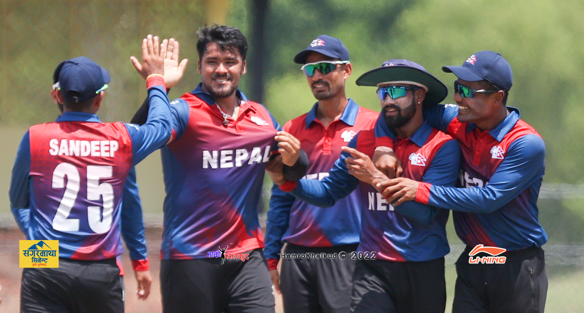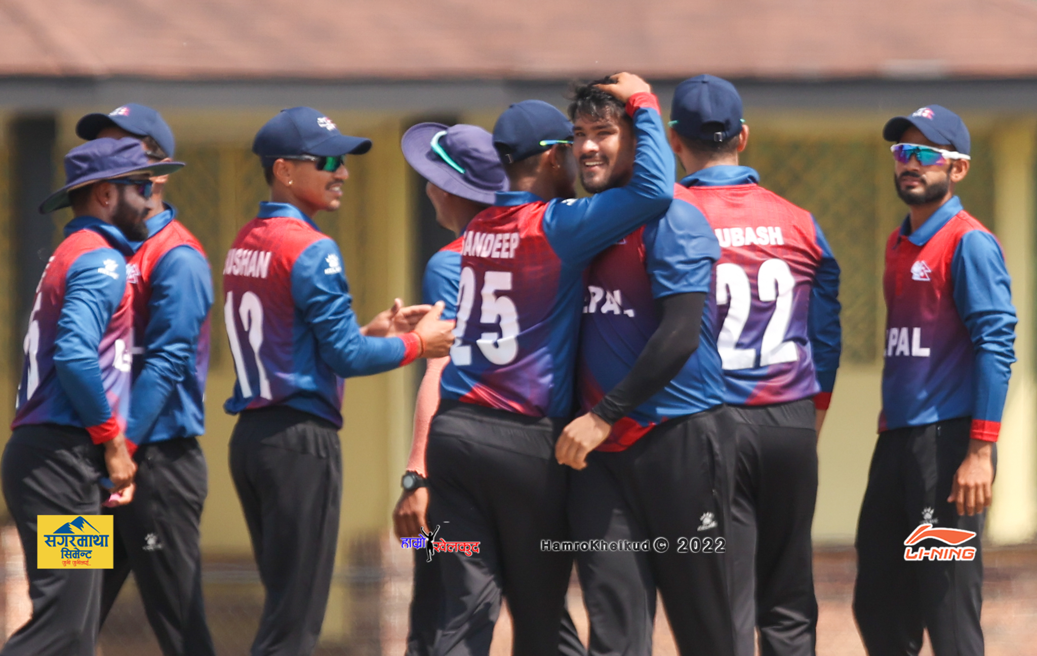 आसिफ शेख (विकेटकिपर), कुशल भुर्तेल, देव खनाल, रोहित पौडेल (उपकप्तान), दीपेन्द्रसिंह ऐरी, आरिफ शेख, आदिल अन्सारी, सोमपाल कामी, करण केसी, सन्दीप लामिछाने (कप्तान) र बसिर अहमद ।