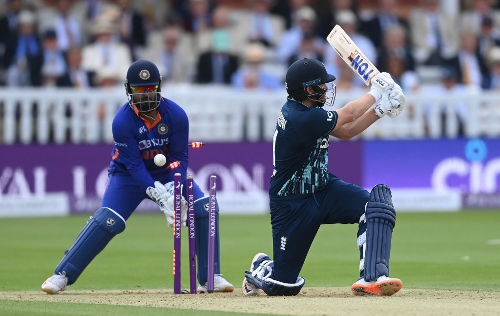 रोय हार्दिक पान्ड्याको नवौं ओभरको पाँचौं बलमा पुल सट खेल्ने धुनमा स्क्वायर लेगमा सूर्य कुमार यादवबाट २३ रनमा क्याच भए । जोनी बेयरस्टो युजभेन्द्र चहलको बलमा स्विप खेल्ने धुनमा मिस हुँदा ३८ रनमा बोल्ड भए ।
