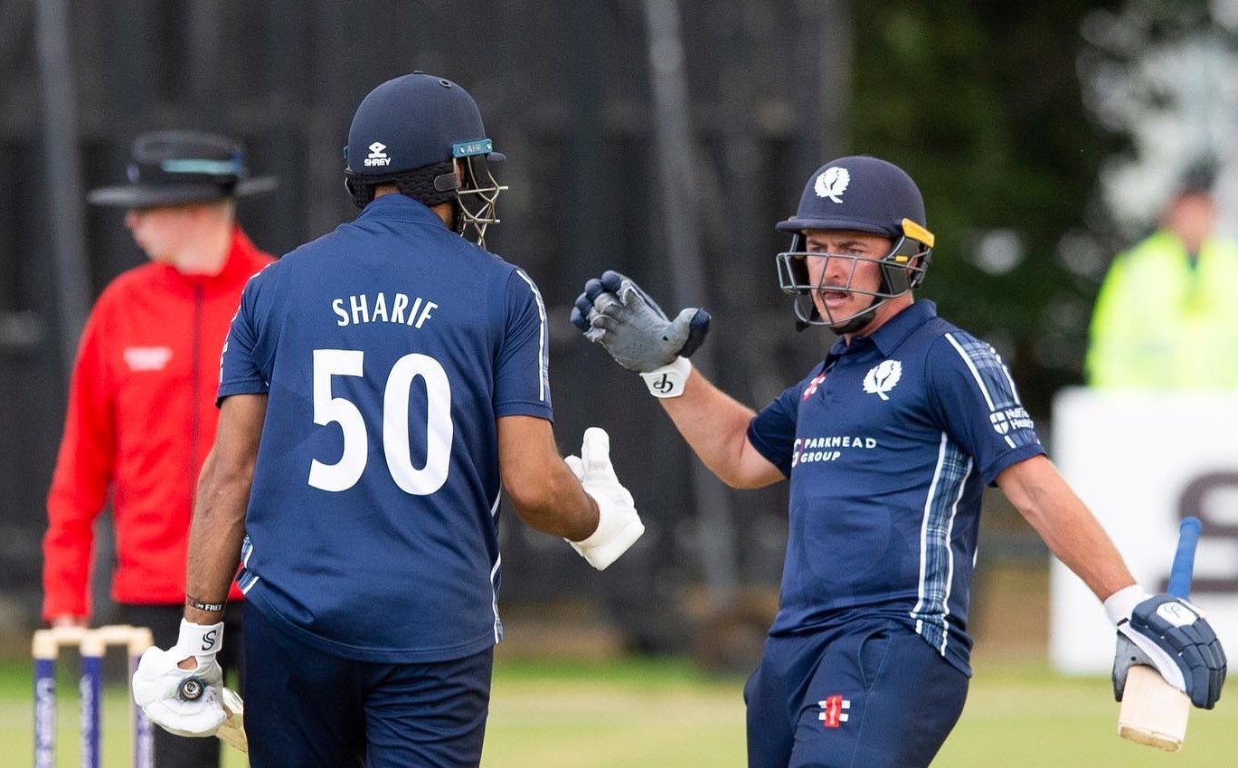 एक समय ३६.४ ओभरमा १३६–७ को अवस्थामा पुगेको स्कटल्यान्डलाई आठौं विकेटका लागि शफ्यान शरिफ र क्रिस ग्रीव्सले ८३ रनको उत्कृष्ट साझेदारी गर्दै रोमान्चक जित दिलाए । स्कटल्यान्ड नेपालसँग ५ विकेटले पराजित भएको थियो ।
