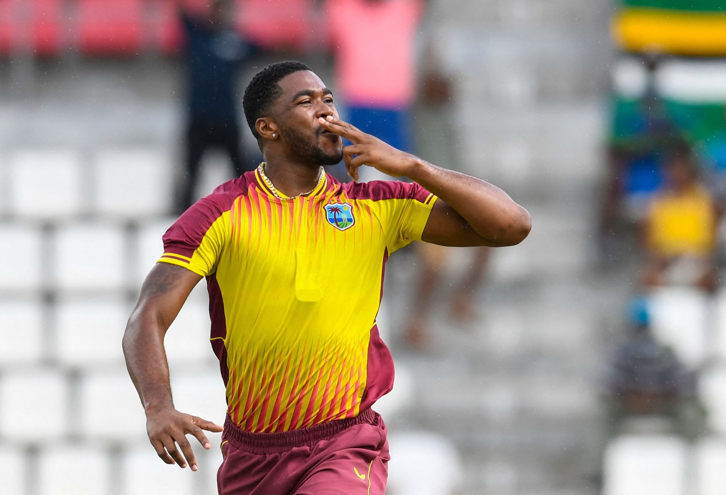 ओपनर काइल मेयर्स ४, शिम्रन हेटमायर १४, जेसन होल्डर ११, रोभम्यान पावेल २१, रोमारियो शेफर्ड १८, ओडेन स्मिथ ९, कप्तान निकोलस पुरन र विकेटकिपर डेभन थोमस एक एक रनमा आउट भए । हेडन वाल्श जुनियर १० रनमा अविजित रहे ।