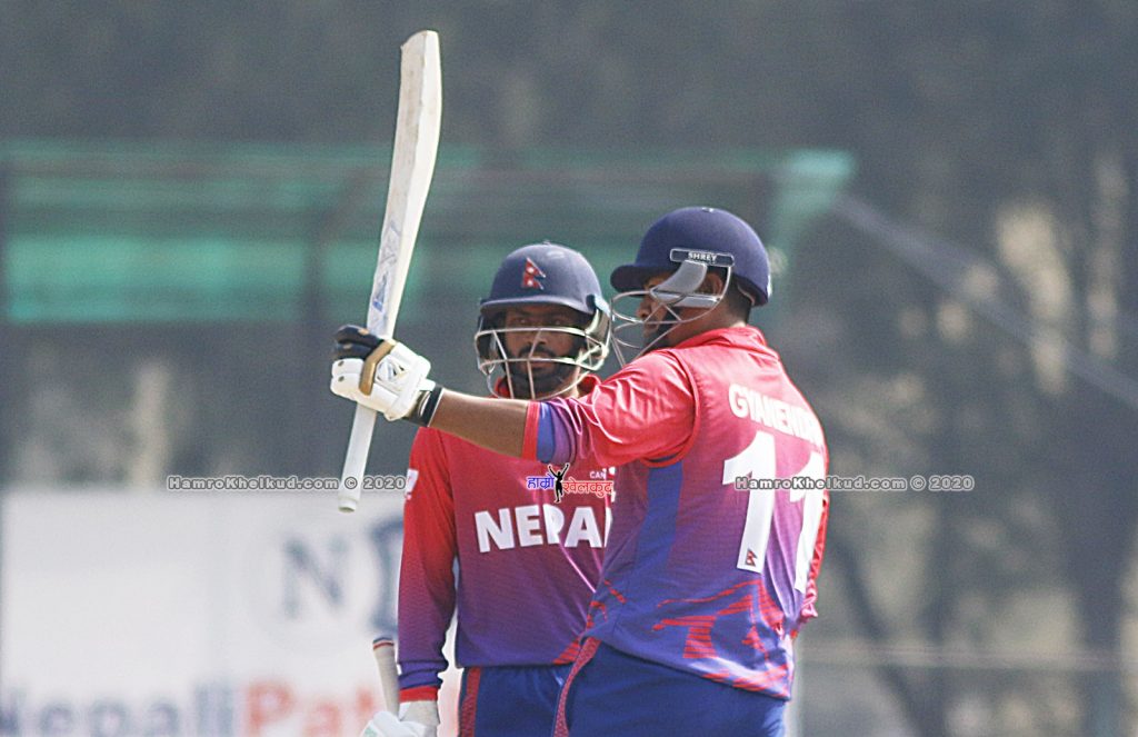 नेपालको जितमा ज्ञानेन्द्र मल्ल ४१ बलमा ४ चौका र १ छक्कासहित सर्वाधिक ४६ रनमा आउट भए । रोहित पौडेल १८ बलमा ३ चौका र १ छक्कासहित २९ रनमा आउट भए ।