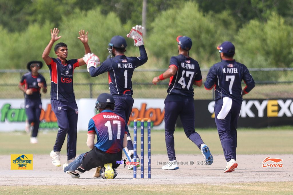 जितको लागि २ सय १२ रनको मध्यम विजयी लक्ष्य पछ्याएको अमेरिका ४७.२ ओभरमा १ सय ८५ रनमा अल आउट भयो । अमेरिकाका ओपनर सैतेजा मुक्कामल्लाले ८१ बलमा ४ चौकासहित सर्वाधिक ४६ रन बनाए ।