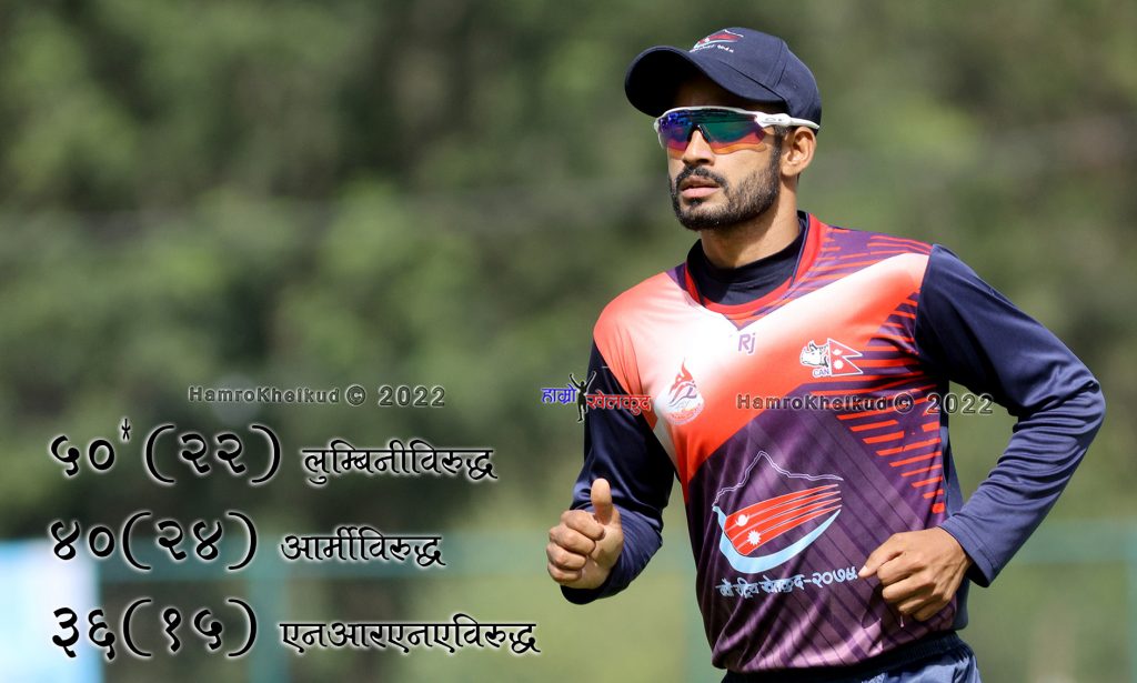 ‘अन्तर्राष्ट्रिय र घरेलु प्रतियोगिता दबाब भिन्दै हुन्छ । मलाई त्यस्तो दबाब हुँदैन । टोलीले जुन भूमिका दिएको हुन्छ त्यसमा राम्रो गर्न चाहन्छु’, उनले थपे, ‘म अहिले राम्रो लयमा छु । टोलीले ५–६ ओभर खेल्न पाउँदा पनि छिटो रन बनाउने भूमिका दिएको छ ।’