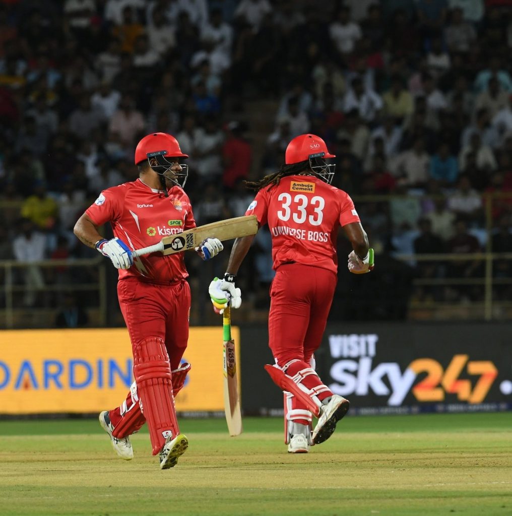 आक्रामक ब्याटिङ गर्नेक्रममा गेलले युसुफ पठानलाई एकै ओभरमा तीन चौका र दुई छक्का हान्दै कुल २५ रन जोडेका थिए । आठौं ओभरको दोस्रो, तेस्रो र पाँचौं बलमा गेलले पठानलाई चौका हानेका थिए । चौथो र छैटौं बलमा छक्का हानेका थिए । त्यसपछि पठानले पुन बलिङ पाएनन् ।